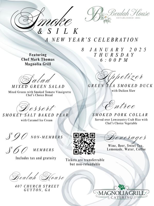 Join us January 8th at 6:00pm for "Smoke and Silk" with Magnolia Grill Catering